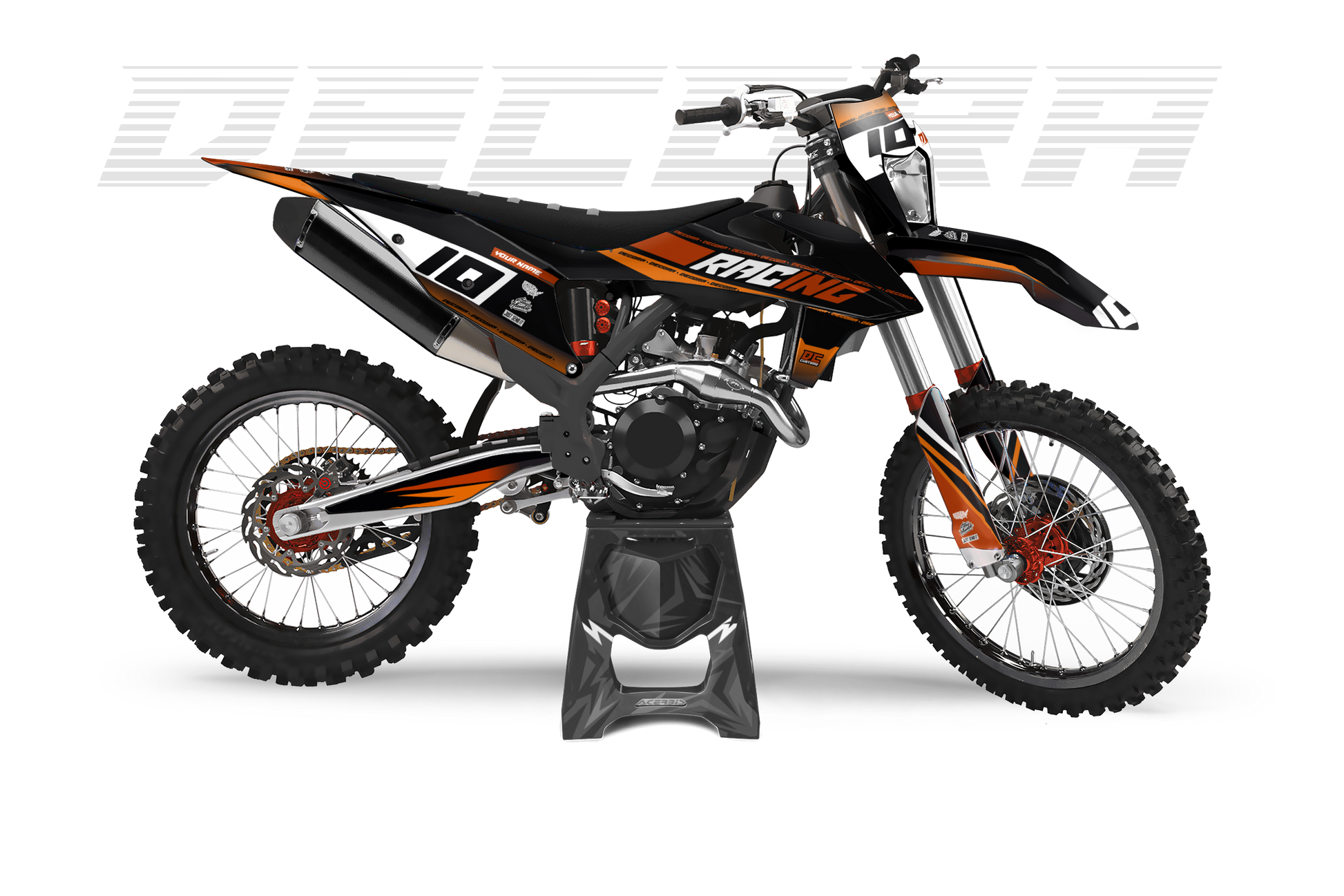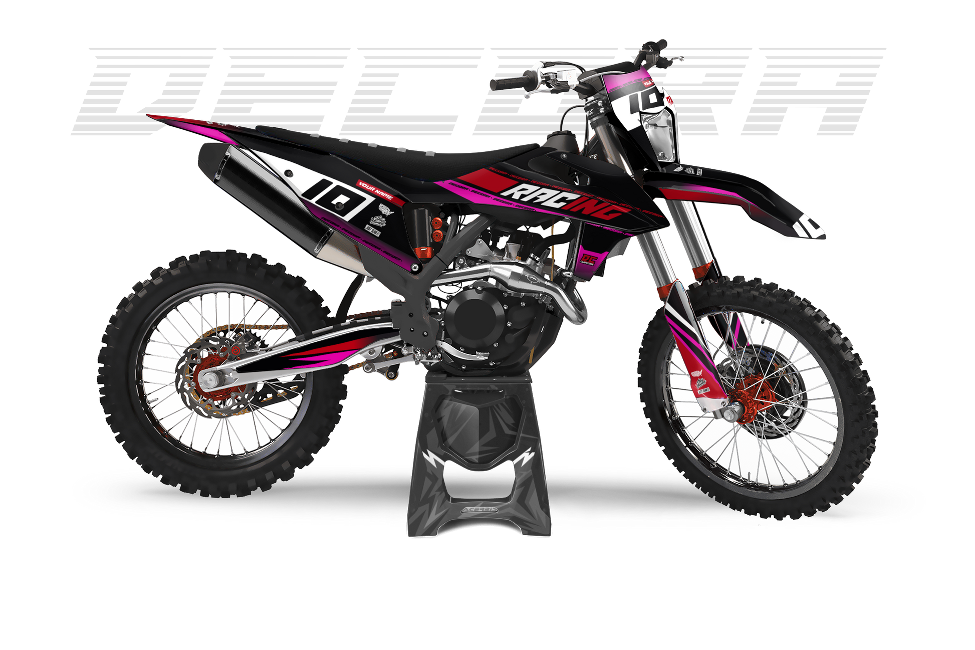 Ein Full-Custom-Dekor wird von Grund auf individuell für dich entworfen – exakt nach deinen Ideen, Wünschen und deinem Style. Du bestimmst das Design, die Farben, die Logos und jedes Detail selbst, und wir setzen es 1:1 für dein Bike um.