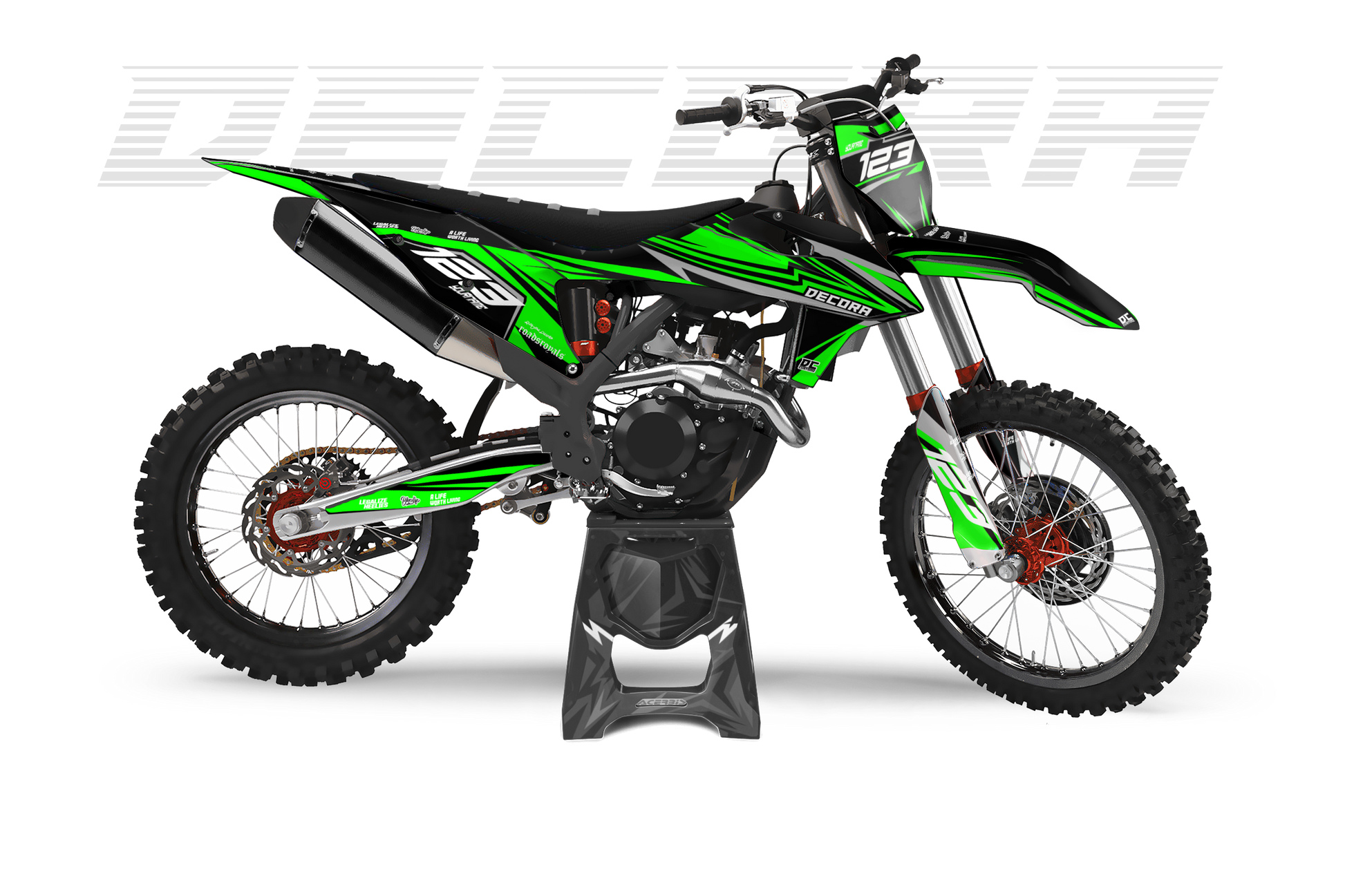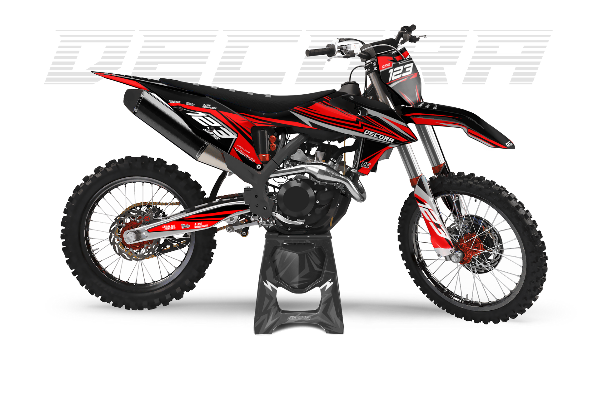 Ein Full-Custom-Dekor wird von Grund auf individuell für dich entworfen – exakt nach deinen Ideen, Wünschen und deinem Style. Du bestimmst das Design, die Farben, die Logos und jedes Detail selbst, und wir setzen es 1:1 für dein Bike um.