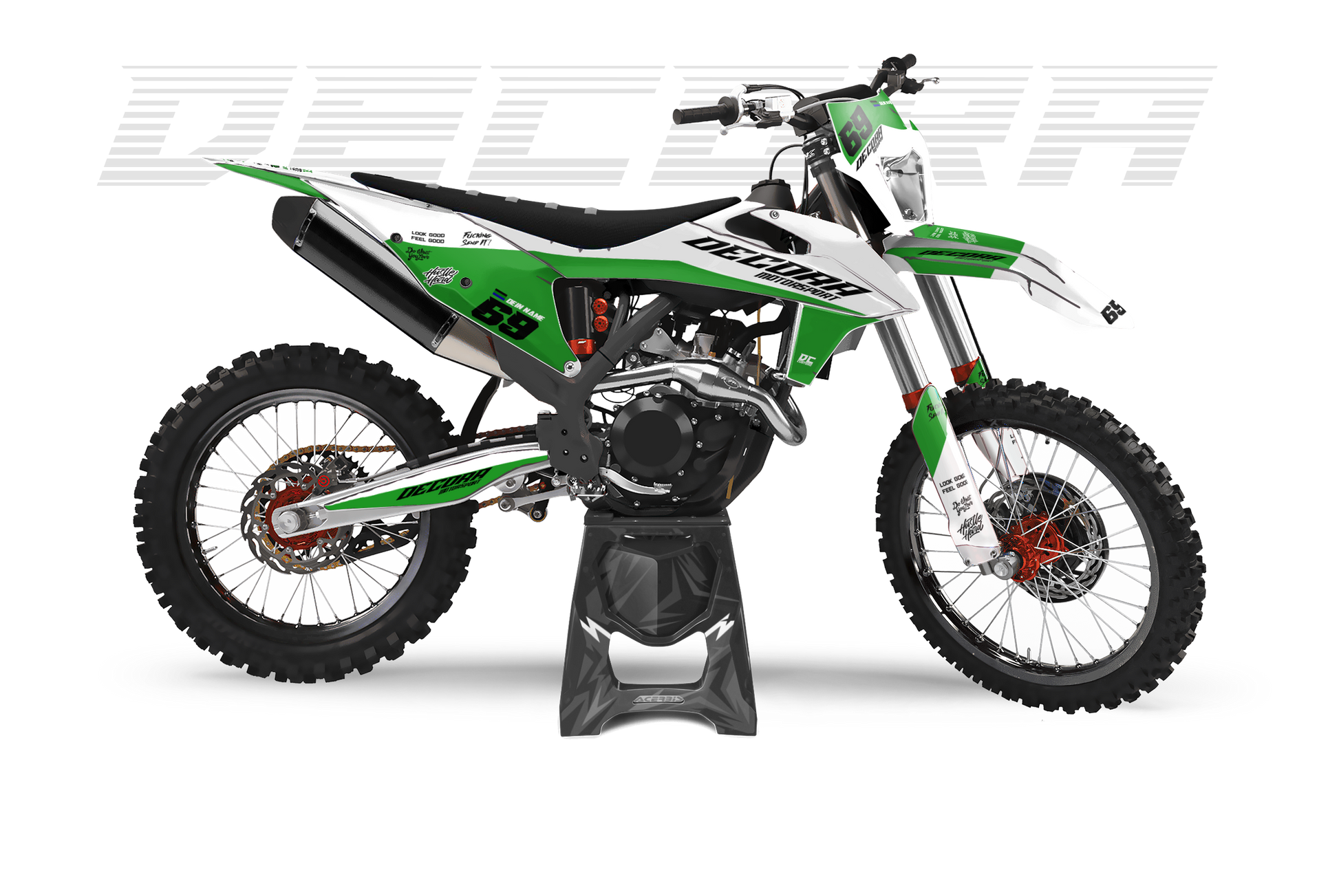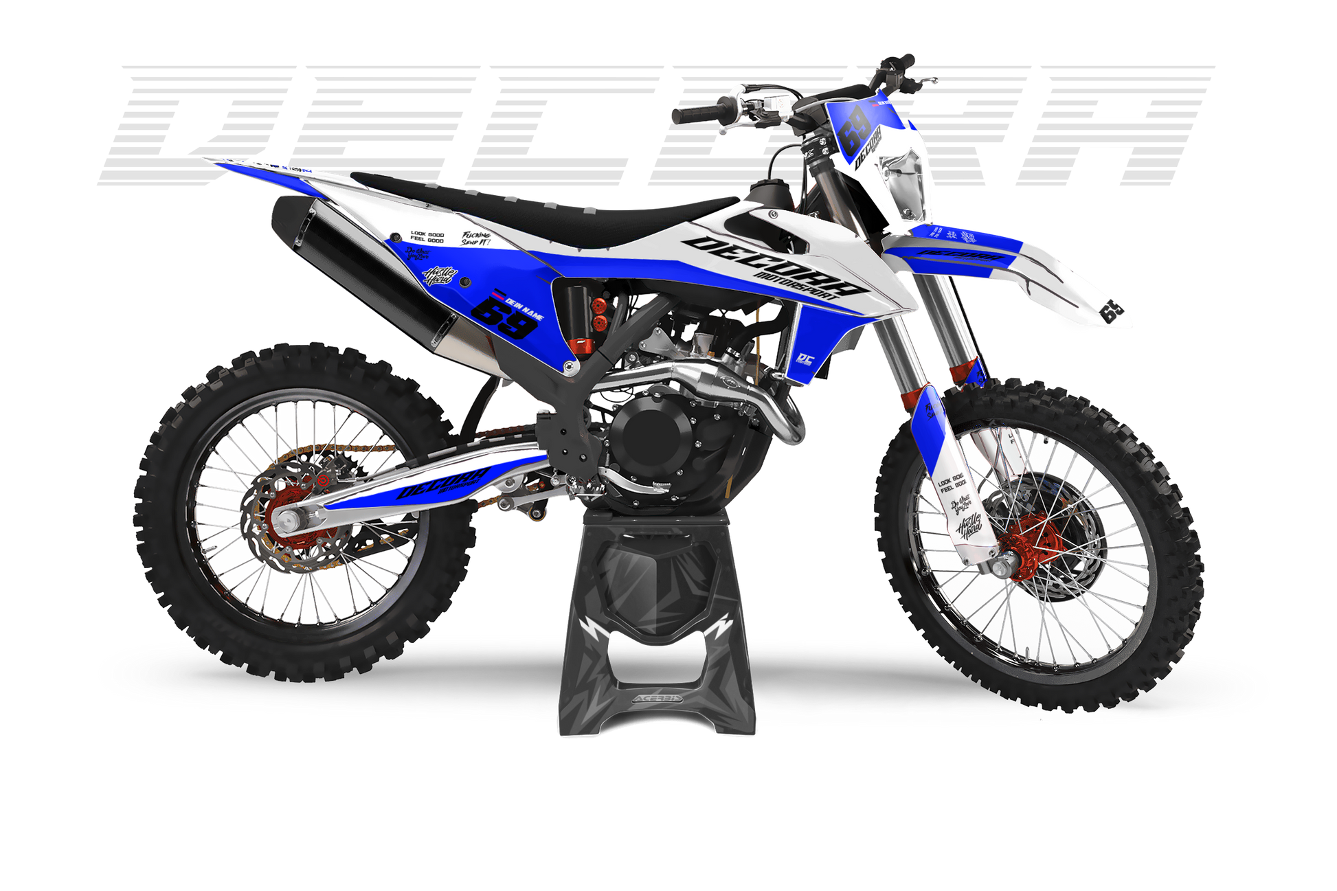 Was sind Semi-Individuelle Dekore? Unsere Semi-Individuellen Dekore bieten dir die perfekte Mischung aus Designfreiheit und schneller Umsetzung. Du startest mit einem professionell gestalteten Grunddesign und passt es ganz einfach an deinen Stil an – ob Farben, Logos, Namen oder Startnummern.