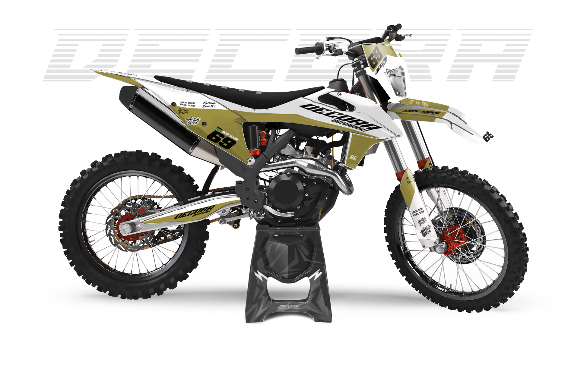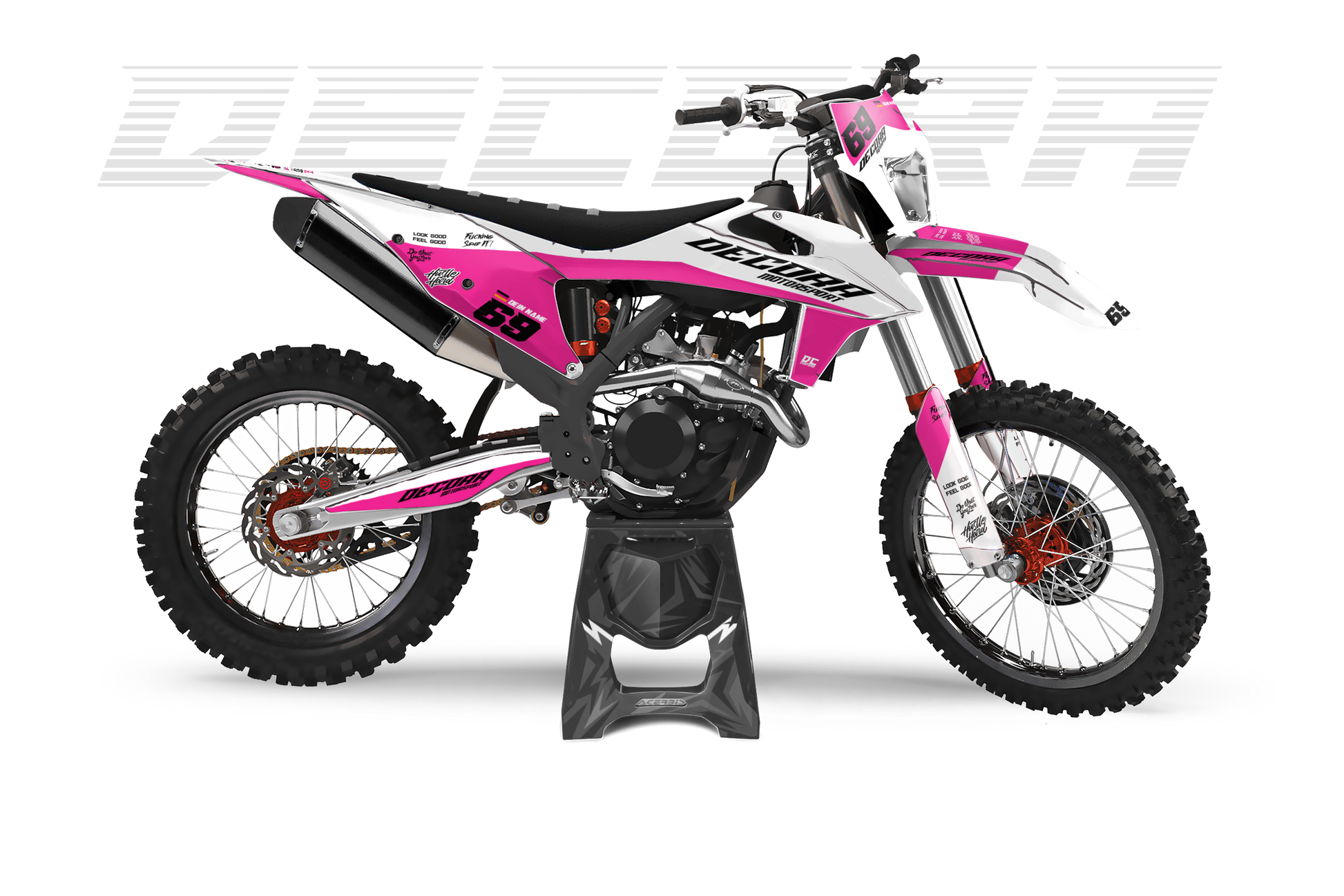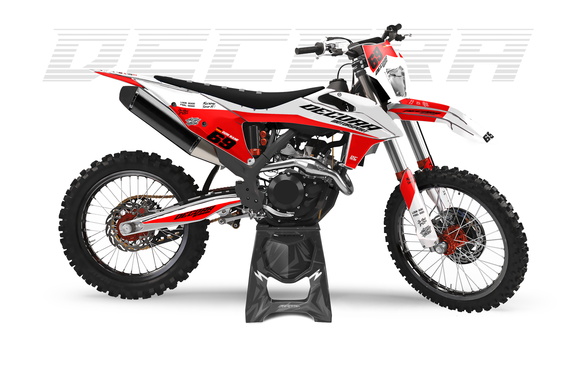 Ein Full-Custom-Dekor wird von Grund auf individuell für dich entworfen – exakt nach deinen Ideen, Wünschen und deinem Style. Du bestimmst das Design, die Farben, die Logos und jedes Detail selbst, und wir setzen es 1:1 für dein Bike um.